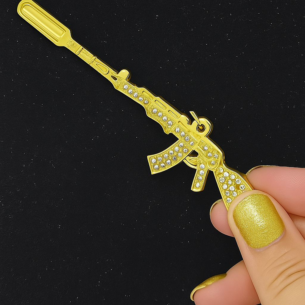 Cool item. The seller accepted my custom request to have a black spoon/keychain, instead of the gold pictured. The hair is partially broken off, but I assume it happened during making the keychain. Not a huge deal. It's also much more purple than I assumed it was from the photo. I thought it referred to the eyes, and the body was silver. Honestly looks cooler this way, just be aware that it's all purple when buying. Very fast shipping though, and came 3 days earlier than expected. Also, the seller included a few free gifts, which was great/unexpected.